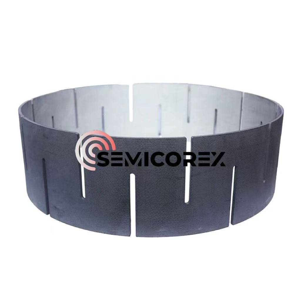 সেমিকন্ডাক্টর ক্রিস্টাল বৃদ্ধির জন্য তাপীয় ক্ষেত্র ব্যবস্থা C/C কম্পোজিট হিটার, ক্রুসিবল, ফ্লো গাইড টিউব, তাপ নিরোধক হাতা এবং ক্রুসিবল শ্যাফ্ট সহ মূল উপাদানগুলির সমন্বয়ে গঠিত। সেমিকোরেক্স-এর সি/সি কম্পোজিট হিটার বেছে নেওয়া তাপীয় ক্ষেত্র ব্যবস্থার উন্নতি এবং অপ্টিমাইজেশানকে সহজতর করতে পারে, কার্যকরভাবে সেমিকন্ডাক্টর, ফটোভোলটাইক এবং অপটিক্যাল শিল্পের মতো সেক্টরে উচ্চ-কার্যকারিতা স্ফটিক উপকরণগুলির জন্য বৃহৎ মাপের প্রয়োগের চাহিদা মেটাতে পারে।