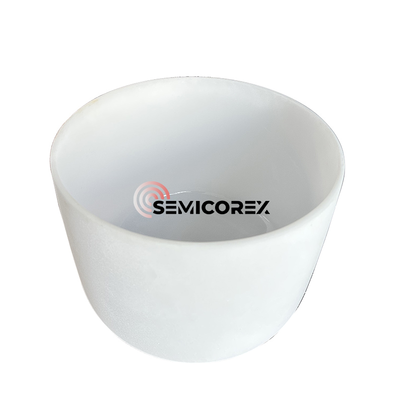 সেমিকোরেক্স ফিউজড কোয়ার্টজ ক্রুশিবলগুলি হ'ল সেমিকন্ডাক্টর উত্পাদনতে ব্যবহৃত মূল্যবান ভোক্তা, যা চরম তাপমাত্রার পরিবেশে উল্লেখযোগ্য বিশুদ্ধতা, তাপীয় স্থিতিশীলতা এবং যান্ত্রিক শক্তি সহ। এই ক্রুশিবলগুলি উচ্চ বিশুদ্ধতা সিলিকা বালি থেকে তৈরি করা হয় যা সর্বাধিক উপলব্ধ ঘনত্ব অর্জনের জন্য একটি অত্যন্ত নিয়ন্ত্রিত গলনা কৌশল ব্যবহার করে একসাথে মিশ্রিত হয়, বেশিরভাগ একজাতীয় উপাদান সহ এর কাঠামোর সীমিত অন্তর্ভুক্তি বা বুদবুদগুলির সাথে যা স্ফটিক পুল-ব্যাক এবং ওয়েফার প্রযোজনার জন্য খুব পুনরুত্পাদনযোগ্য। এই ক্রুশিবলগুলির দূষণের অতি-নিম্ন স্তর রয়েছে তাদের প্রক্রিয়াগুলির জন্য আদর্শ করে তোলে যেখানে উপাদান বিশুদ্ধতা সরাসরি ডিভাইসের ফলন এবং কার্যকারিতা প্রভাবিত করে।