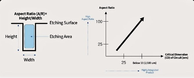 অ্যাসপেক্ট রেশিও, নাম থেকেই বোঝা যাচ্ছে, এচিং ডেপথ এবং অ্যাপারচার প্রস্থের অনুপাত। অ্যাসপেক্ট রেশিও স্ট্রাকচার হল MEMS-এ 3D ডিভাইসের জন্য একটি মূল প্রয়োজনীয়তা, এবং নিচের হারের অবনতি এড়াতে গ্যাসের অনুপাত এবং পাওয়ার কন্ট্রোলের মাধ্যমে অপ্টিমাইজ করা আবশ্যক।