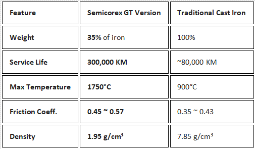 ভর হ্রাস: জিটি সংস্করণের ওজন একটি স্ট্যান্ডার্ড কাস্ট আয়রন ডিস্কের মাত্র 35%।
