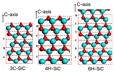 অবশ্যই, SiC উপাদান একটি Si পরমাণু এবং একটি C পরমাণুর একটি একক টেট্রাহেড্রন দ্বারা গঠিত নয়, তবে অসংখ্য Si এবং C পরমাণু দ্বারা গঠিত। বিপুল সংখ্যক Si এবং C পরমাণু স্থির হয়ে দ্বিগুণ পরমাণু স্তর গঠন করে (সি পরমাণুর একটি স্তর এবং Si পরমাণুর একটি স্তর), এবং অসংখ্য দ্বিগুণ পরমাণু স্তরগুলি SiC স্ফটিক গঠন করে। Si-C ডবল পারমাণবিক স্তরগুলির স্ট্যাকিং প্রক্রিয়ার সময় পর্যায়ক্রমিক পরিবর্তনের কারণে, বর্তমানে 200 টিরও বেশি আলাদা আলাদা স্ফটিক কাঠামো রয়েছে। বর্তমানে, ব্যবহারিক প্রয়োগে সবচেয়ে সাধারণ স্ফটিক ফর্মগুলি হল 3C-SiC, 4H-SiC এবং 6H-SiC।