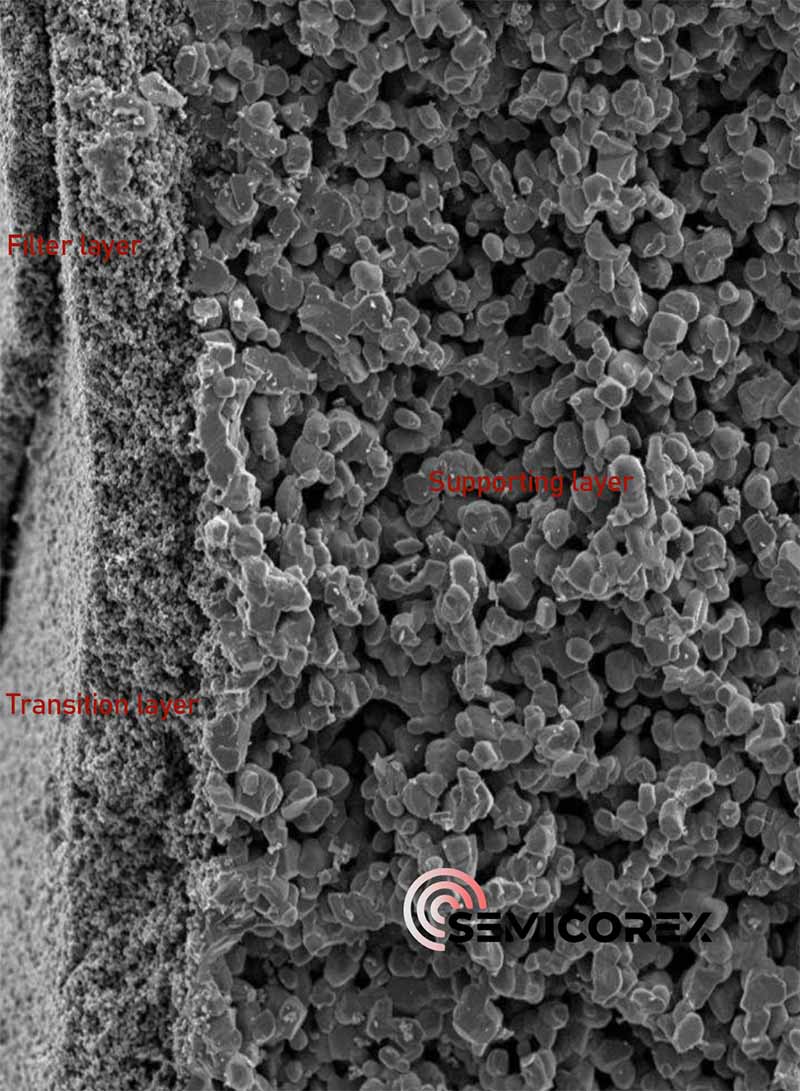 সেমিকোরেক্স সিলিকন কার্বাইড মেমব্রেন একটি চাপ-চালিত বিচ্ছেদ প্রক্রিয়ায় কাজ করে। যেহেতু বর্জ্য জল ঝিল্লি পৃষ্ঠের উপর দিয়ে প্রবাহিত হয়, চাপ ডিফারেনশিয়াল একটি সুনির্দিষ্ট 0.1-মাইক্রন ছিদ্র কাঠামোর মাধ্যমে বিশুদ্ধ জলকে জোর করে।